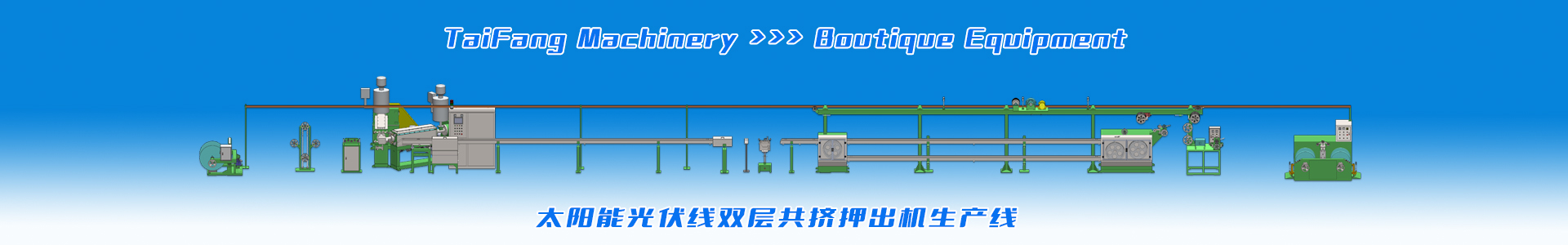 適應于生產(chǎn)太陽能光伏電纜、低煙無鹵料電纜、輻照電纜、XL-PE交聯(lián)聚乙烯電纜,主要有高速絞線機、雙層共擠及串聯(lián)生產(chǎn)線設備。
